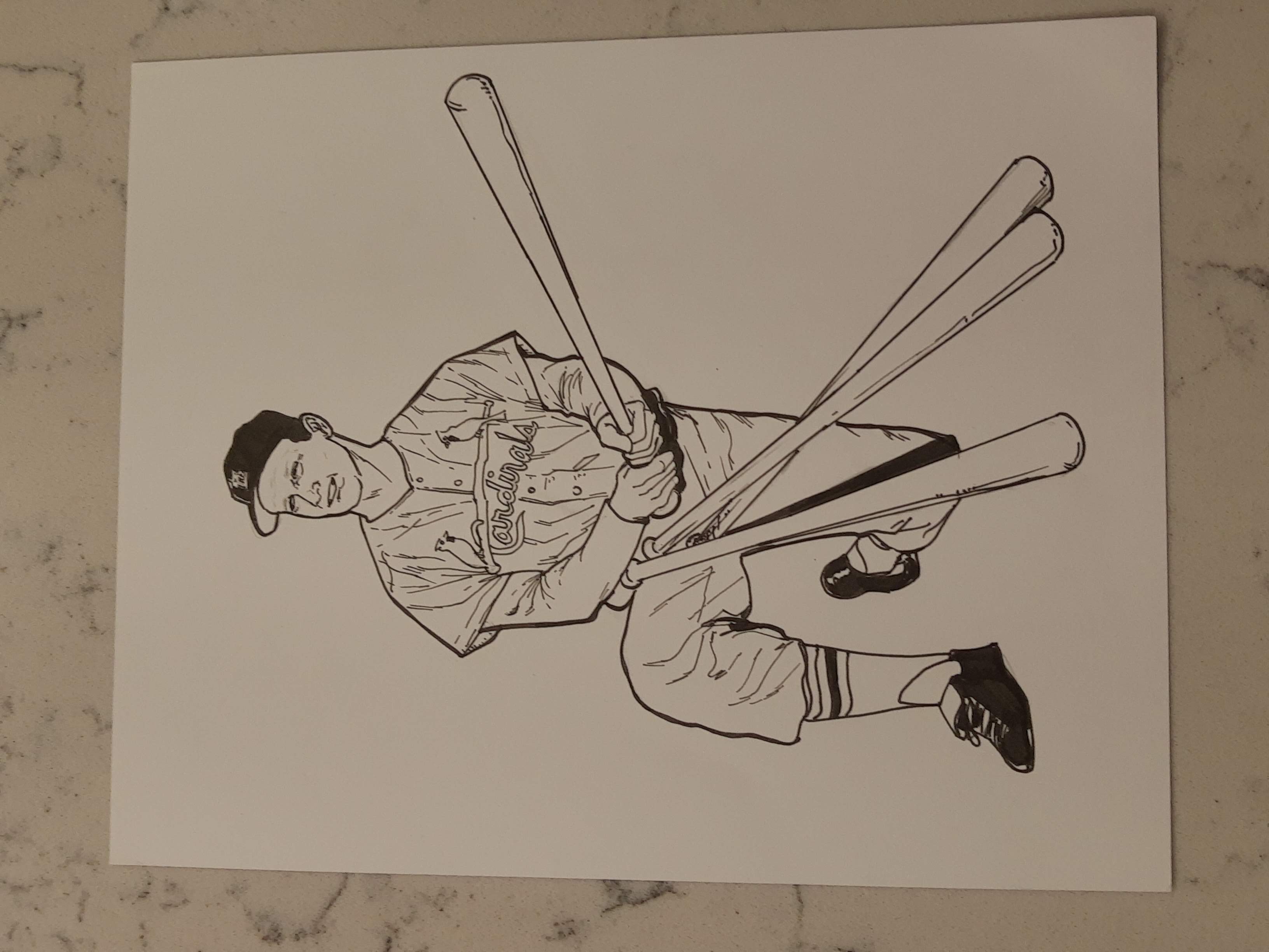 Stan Musial Line art on custom Briankong.com board ( Bio /info on back )