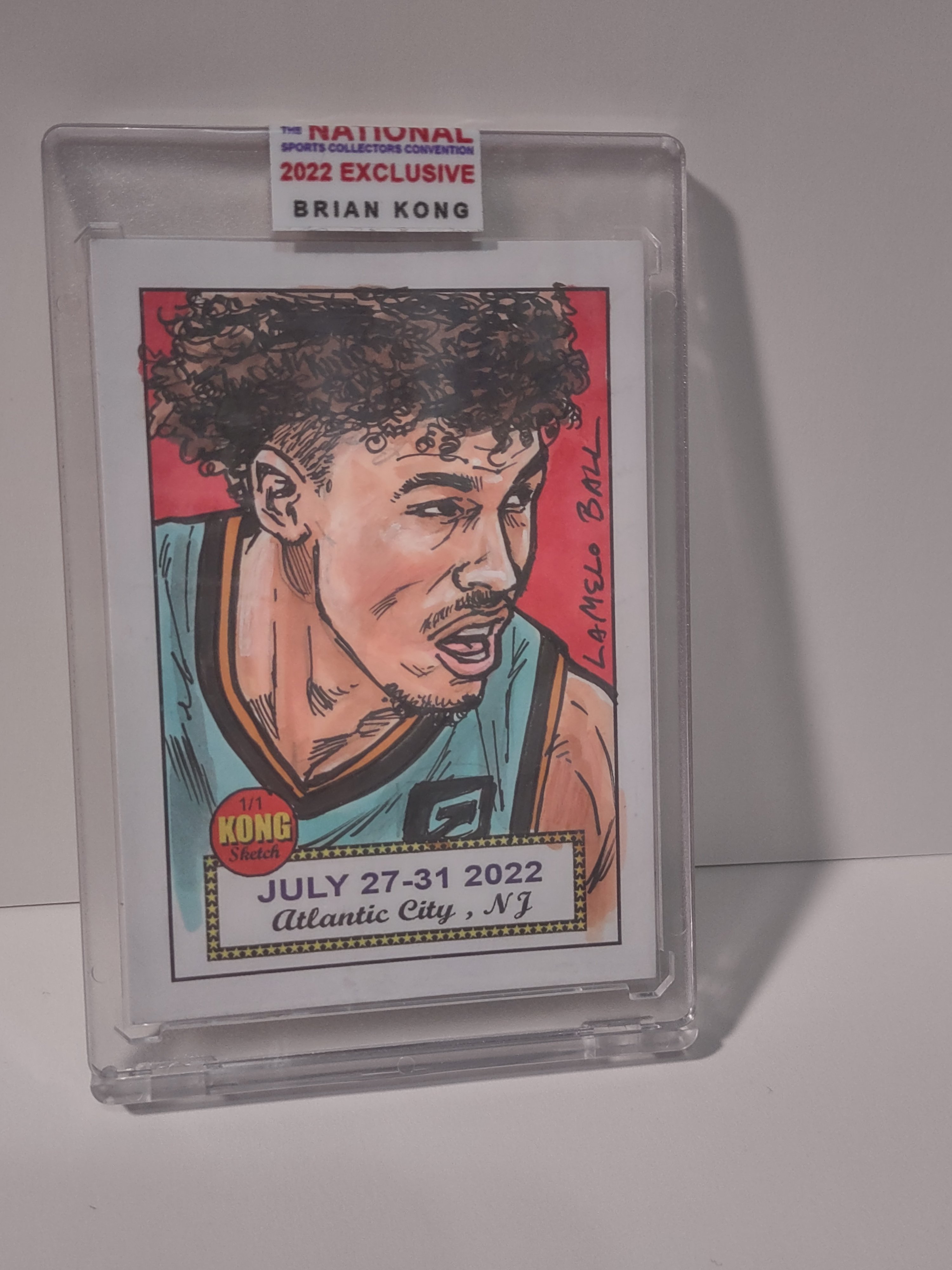 LaMelo Ball original 1/1 sketch card exclusive the National sports collectors convention July 27-31 2022.