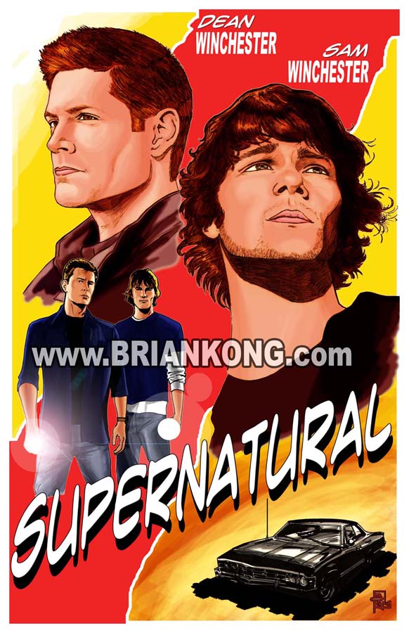 Supernatural: Grind house style Sam & Dean Winchester. Size is 11x17 & signed by artist. Must have for any Supernatural fan. No Watermark on print.