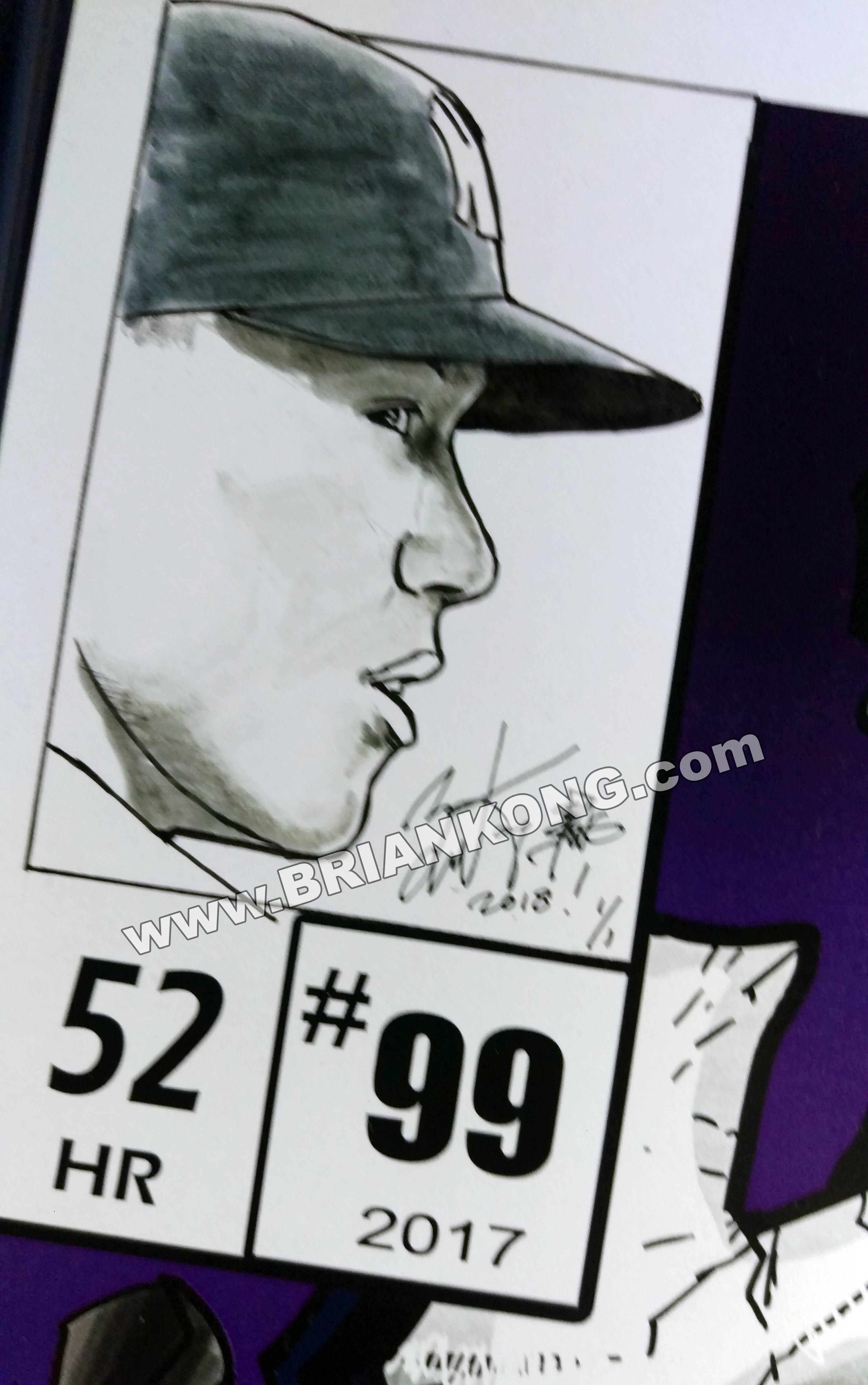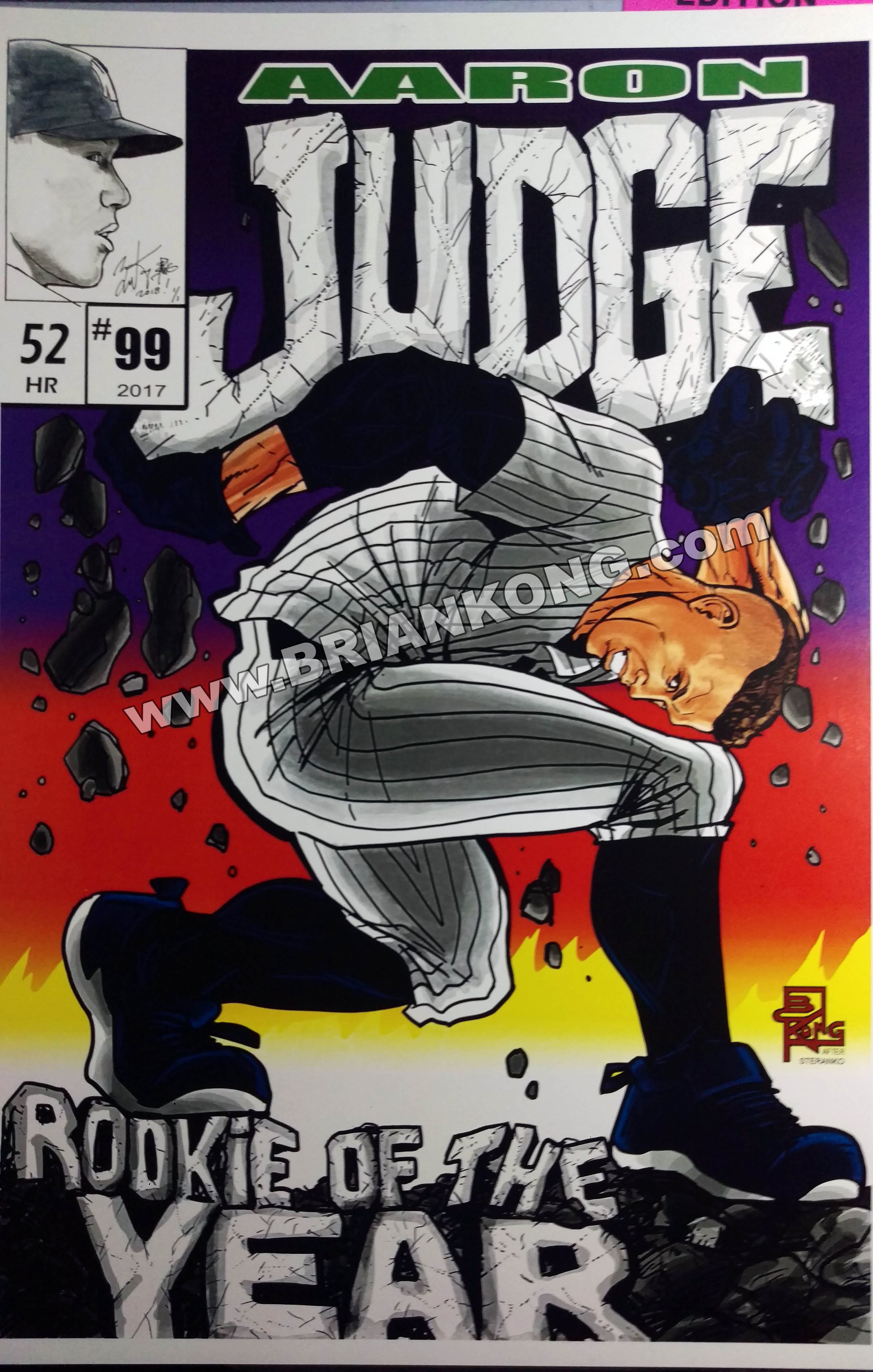 REMARQUED Edition, features original 1/1 art in top left corner box, NY Yankees 2017 Rookie of the Year AARON JUDGE exclusive LE print. This is a mash-up/ homage to HULK King Size special #1 .Size is 12x18 & signed by artist. Must have for any comic/sports fan. No Watermark on print.