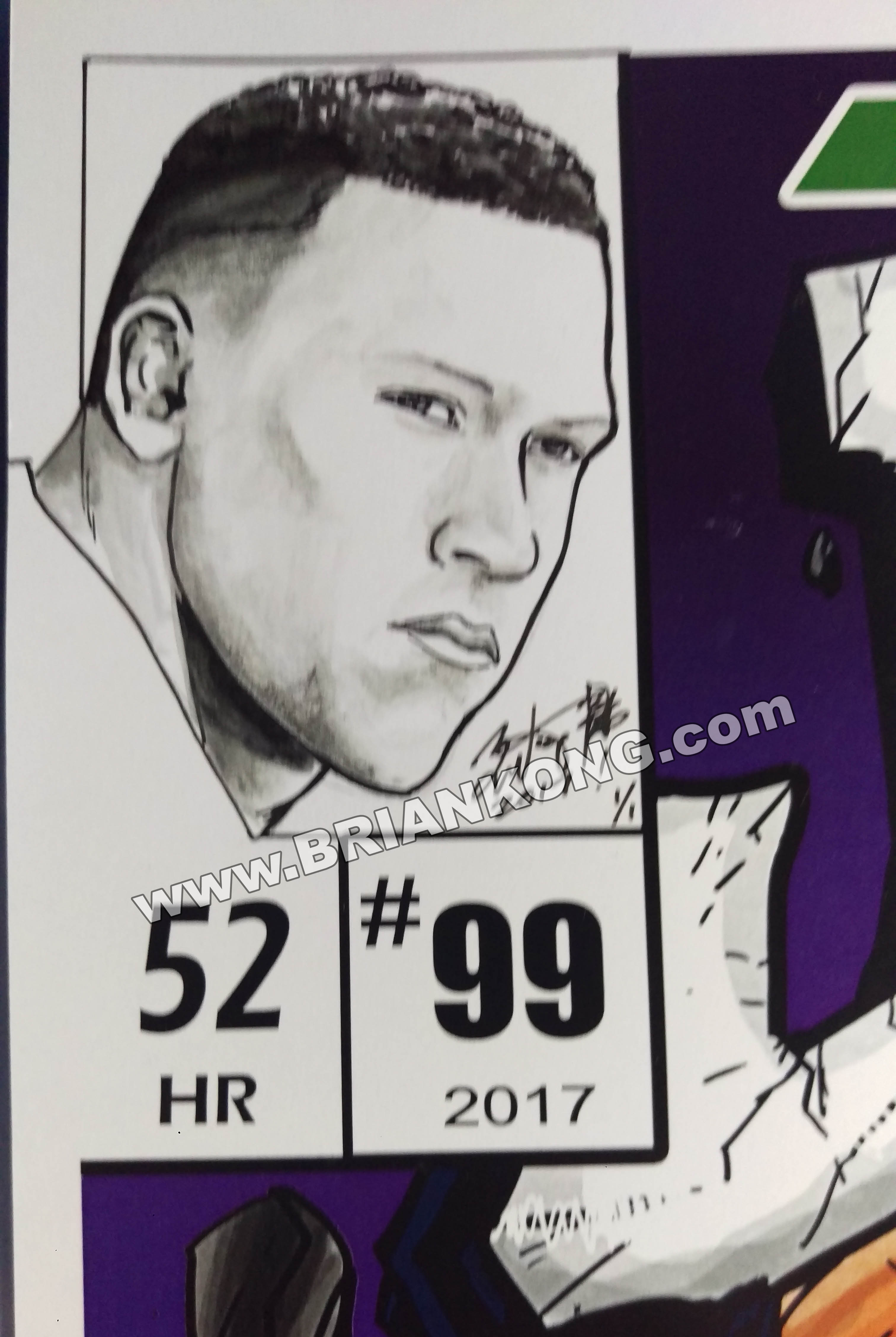 REMARQUED Edition, features original 1/1 art in top left corner box, NY Yankees 2017 Rookie of the Year AARON JUDGE exclusive LE print. This is a mash-up/ homage to HULK King Size special #1 .Size is 12x18 & signed by artist. Must have for any comic/sports fan. No Watermark on print.