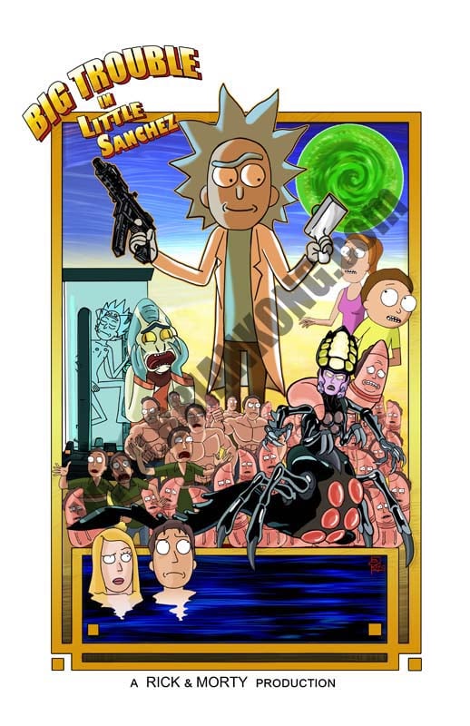 Rick & Morty : Big Trouble in Little Sanchez 11x17 print , homage to the " Big Trouble in Little China" classic movie poster by Drew Struzan.