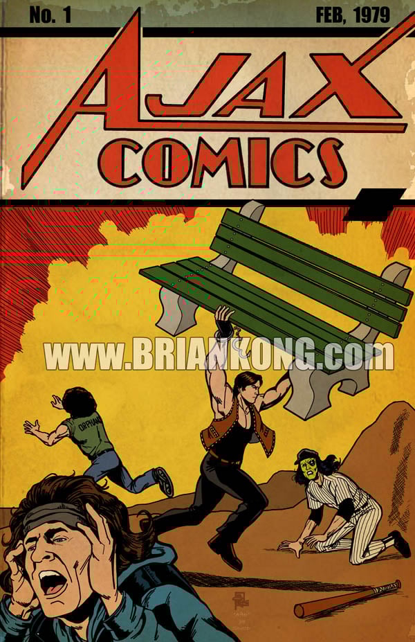 The Warriors: Ajax comics ( homage to Action comics #1) featuring Ajax of the cult classic film The Warriors. 11x17 print signed by artist Brian Kong.