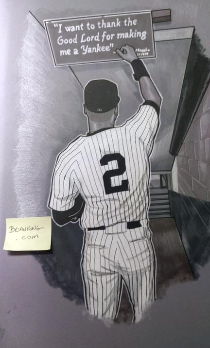 Derek Jeter:: tapping sign. Original art on 11x17 Gray Tonal paper, Ink, color pencils & acrylic paint