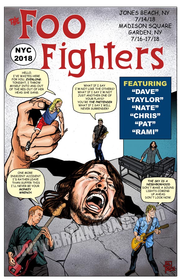 Foo Fighters/ Fantastic Four #1 Mashup NYC 2018 dates, Jones Beach/ MSG. 11x17 Signed by Brian Kong