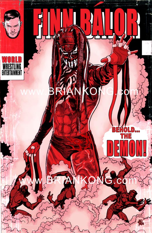 Finn Balor: Behold the DEMON . This mashup/homage print of Avengers #57 is signed and #'d to 50.