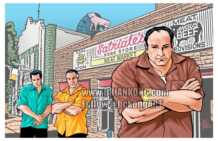 TONY, PAULIE & SILVIO chilling at Satriale's. signed by artist Brian Kong . Debuted at the 2019 SOPRANOSCON