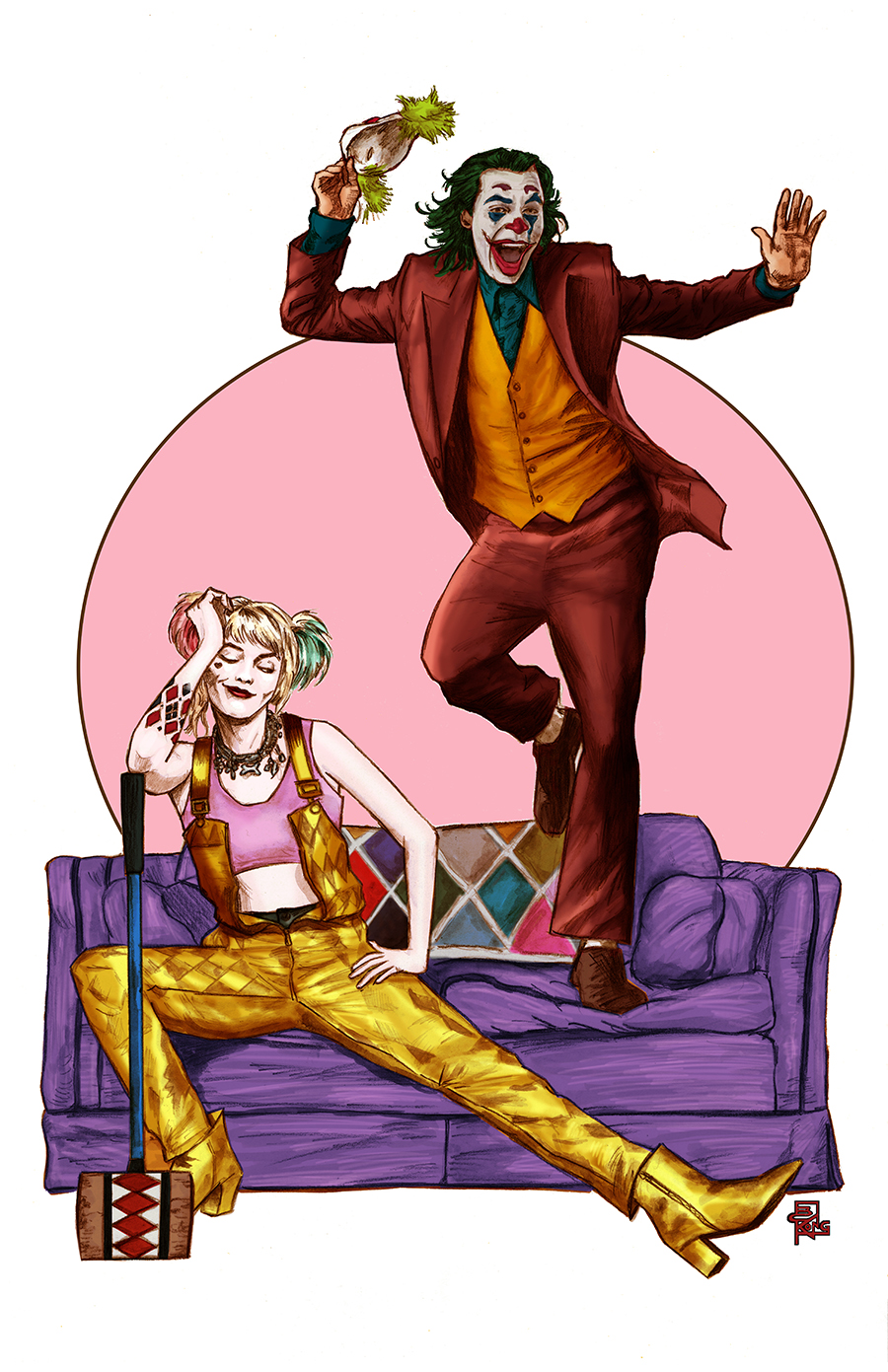 Harley Quinn ( Birds of Prey ) & The Joker, 11x 17 print signed by artist.