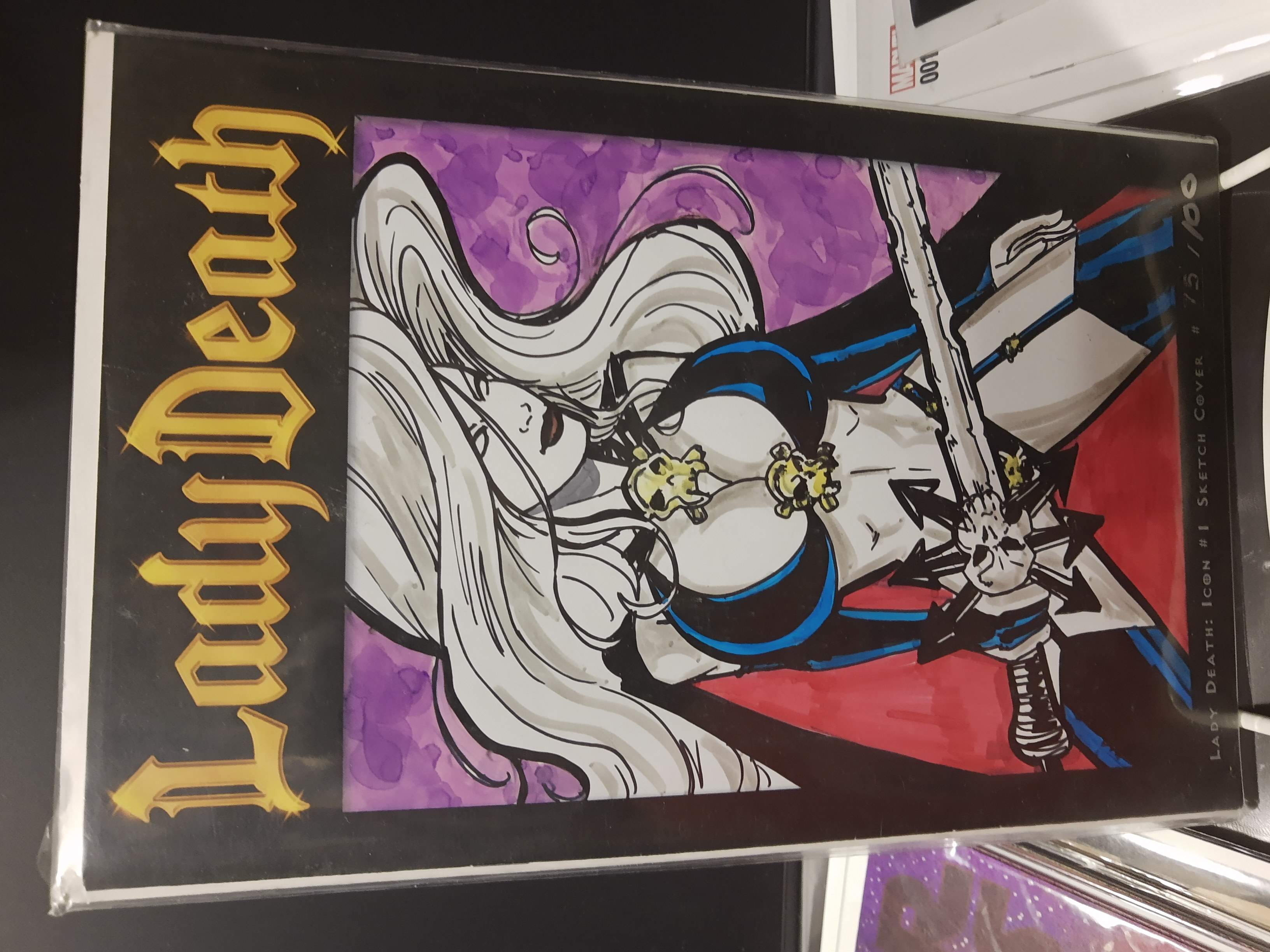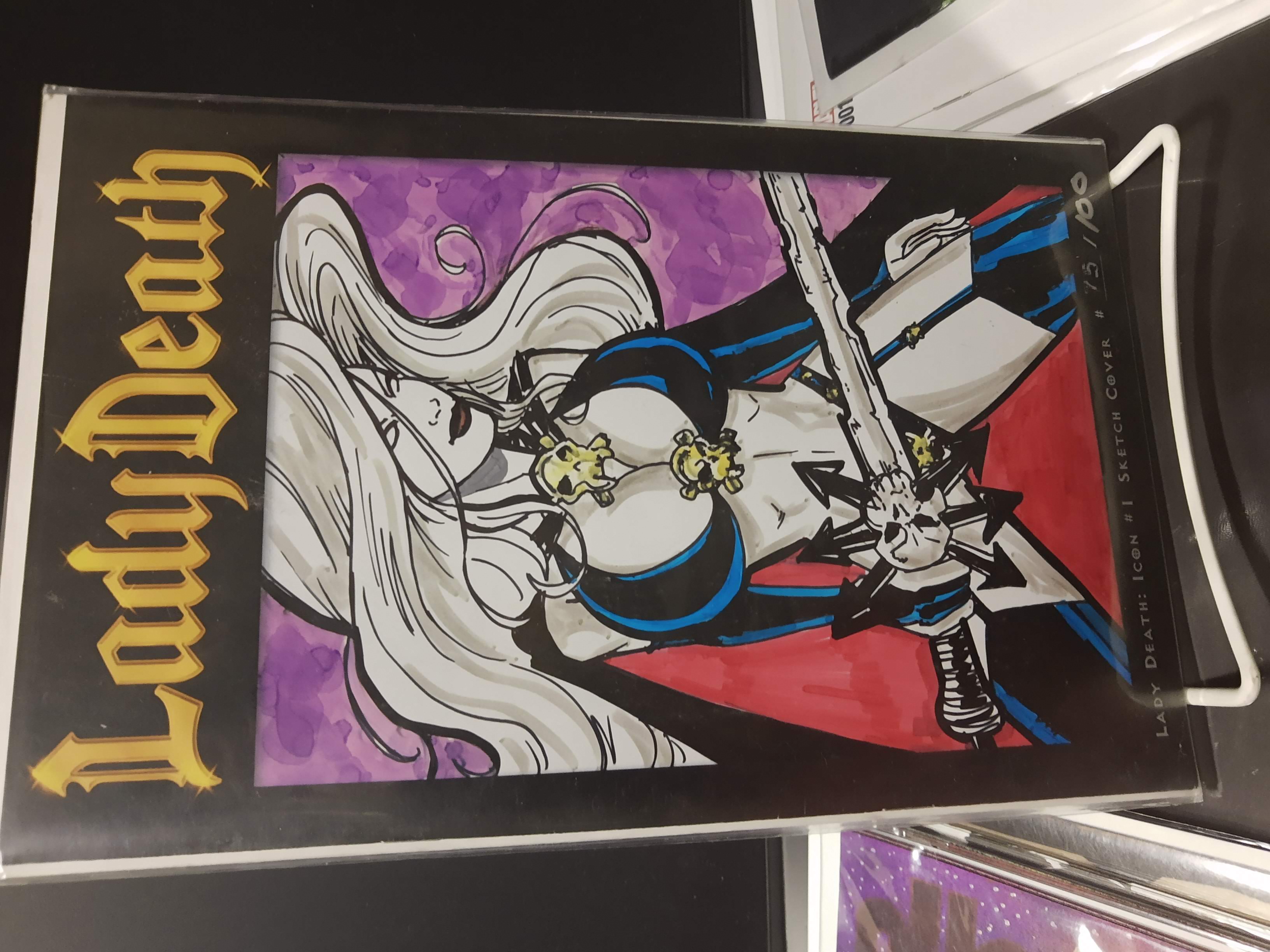 Lady Death: Icon #1; Original art done in markers/Ink on RARE Blank variant edition ( #75/100 )