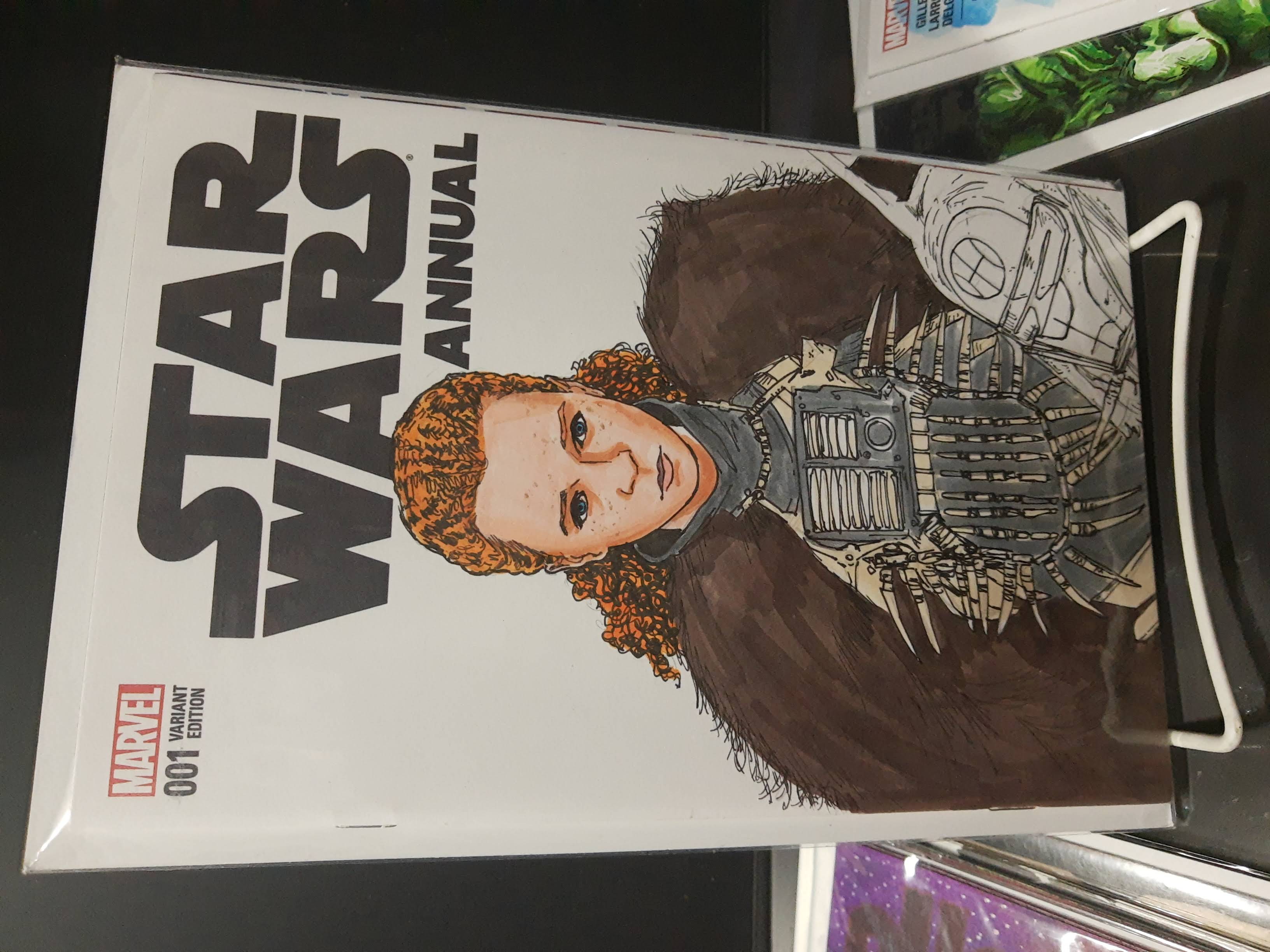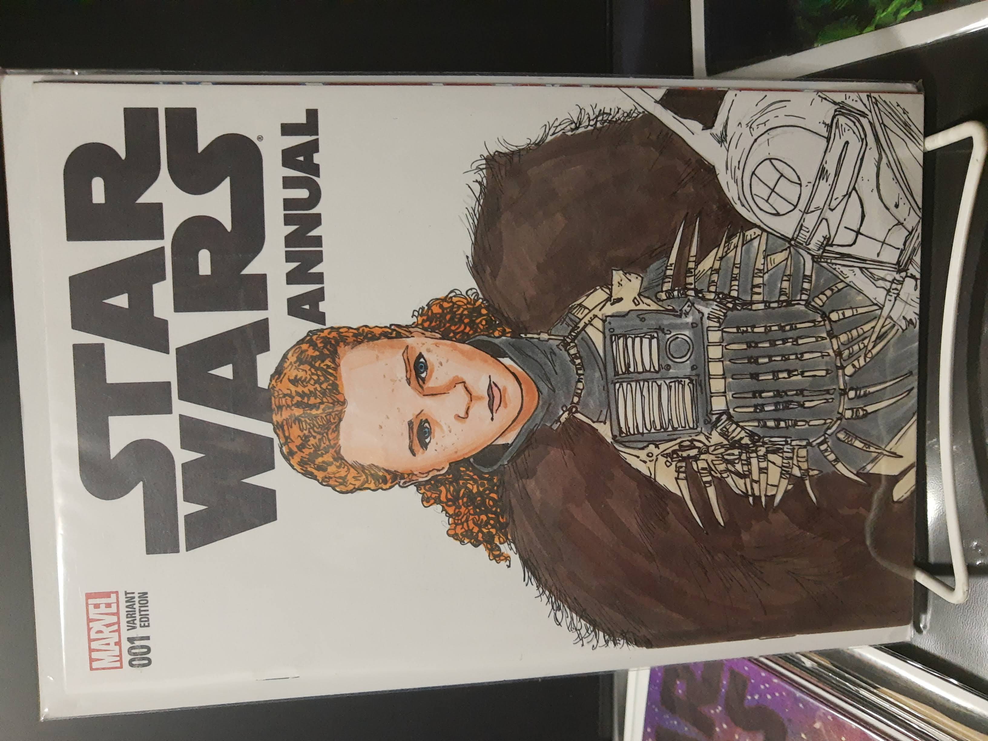STAR WARS ANNUAL #1 : ENFYS NEST ( SOLO movie ) Original art in copics, Ink on blank variant sketch cover
