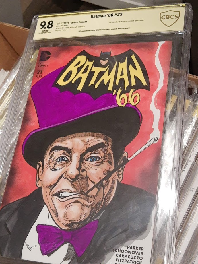 Original art on Batman 66 variant sketch cover cbcs 9.8 featuring original art of Burgess Meredith as Penguin.