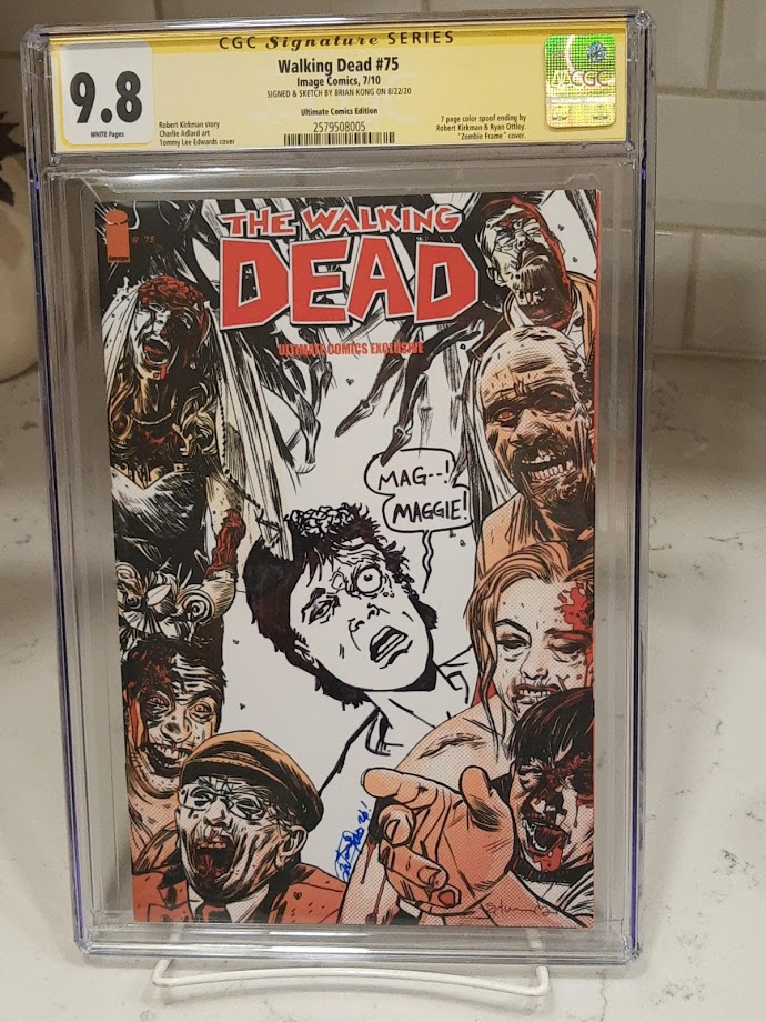 The Walking Dead number 75 ultimate Comics exclusive cgc 9.8 featuring original sketch of Glenn Signature Series signed by Brian Kong