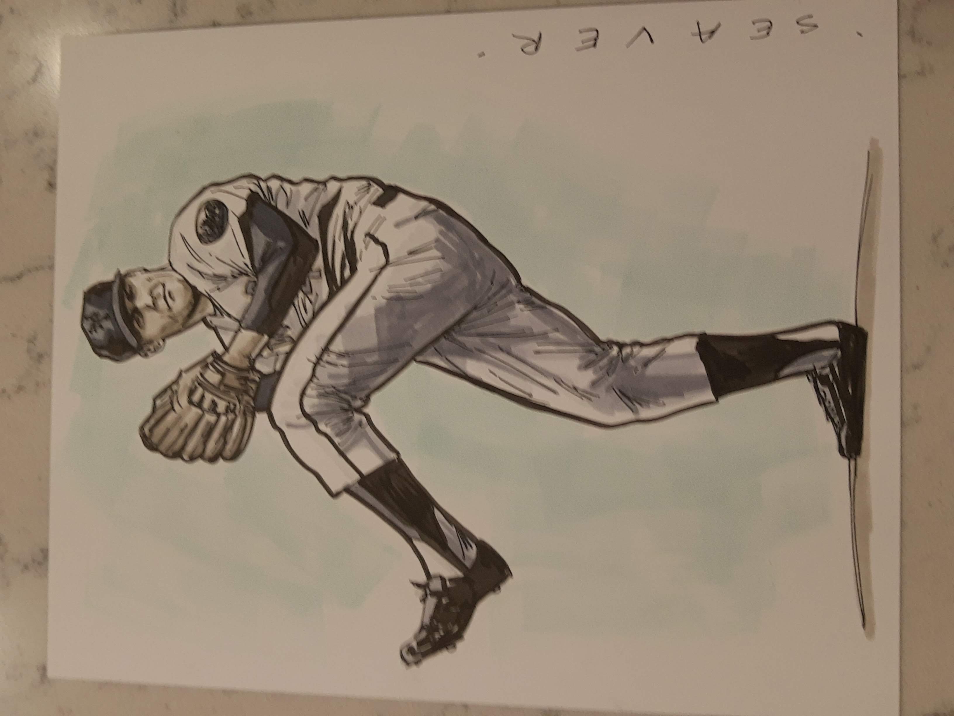 Tom Seaver 8x10 original art on Briankong.com custom board ( bio/info on back )