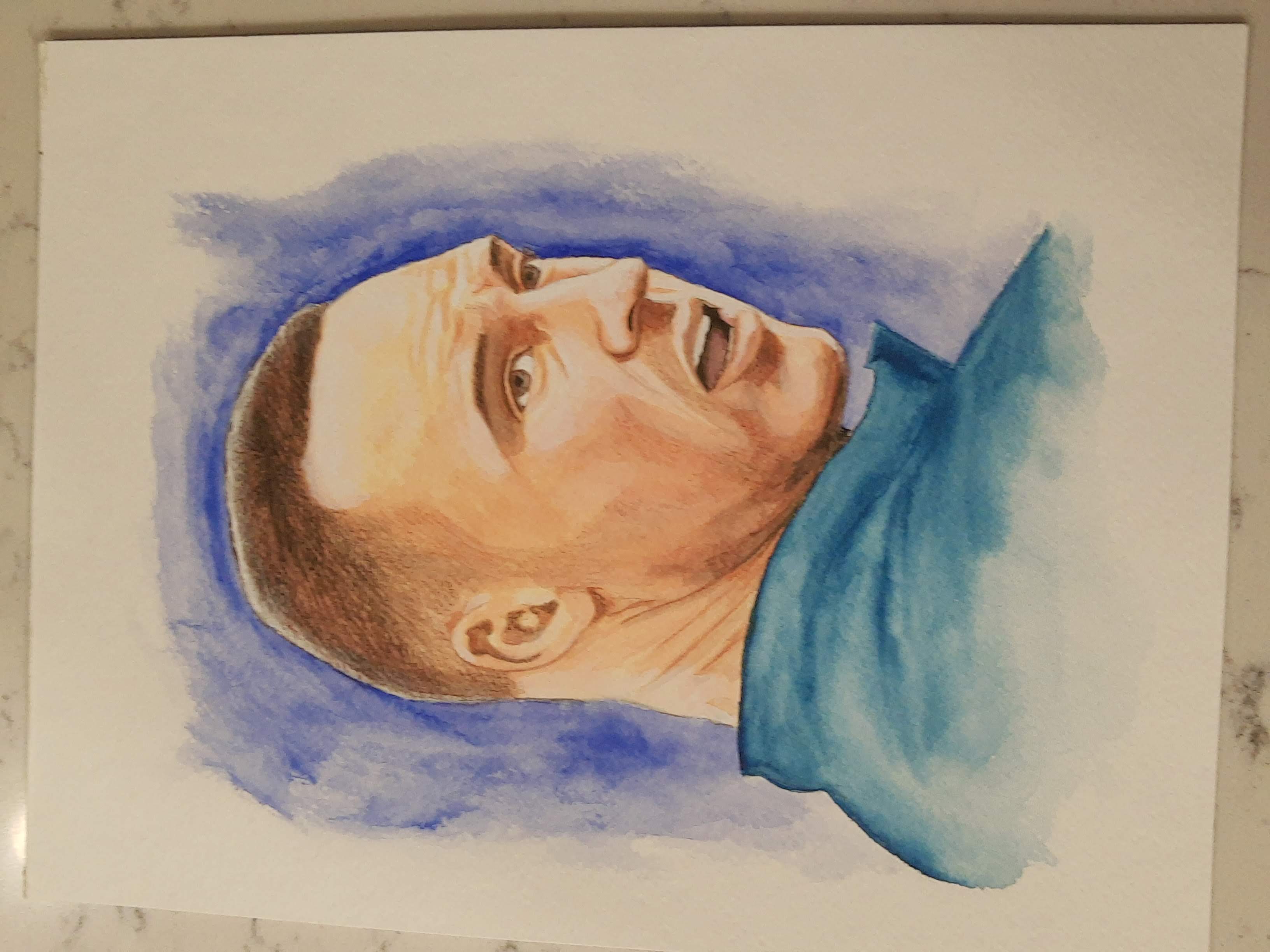 Original Derek Jeter watercolor used for personal promotional card for NSCC 2010. 9x 12 on watercolor stock
